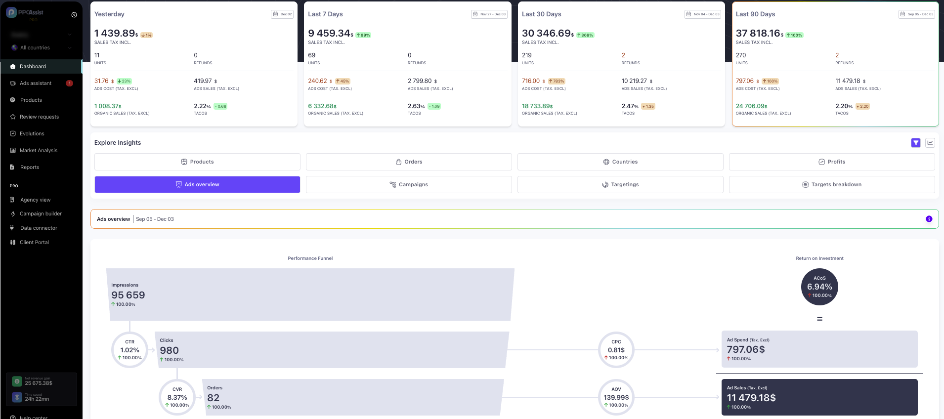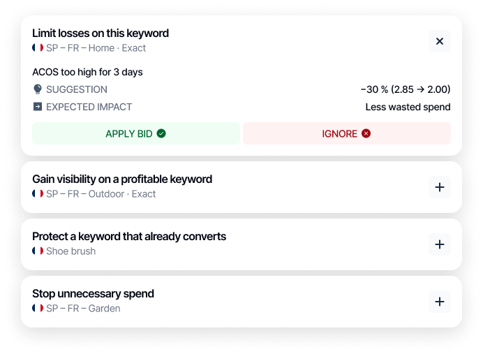 You manage your campaigns yourself. PPC Assist helps you apply effective strategies consistently — without spending hours in Amazon Ads or losing control.