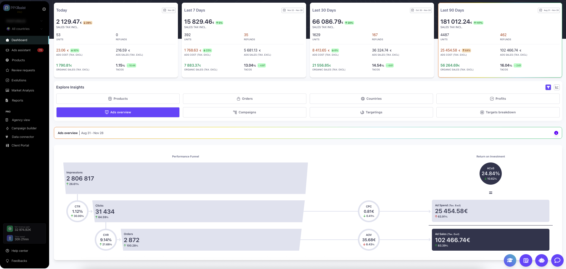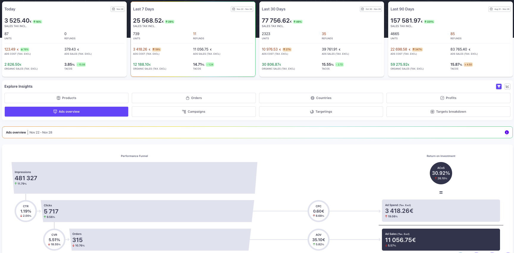 Automated campaign analysis, structured by targets, with clear, actionable recommendations — always under your control.